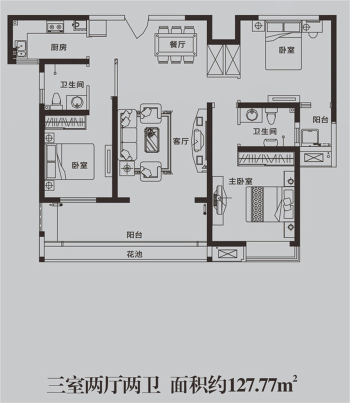 • 東方金典三期和悅GA3戶型 3室2廳2衛1廚127.77㎡