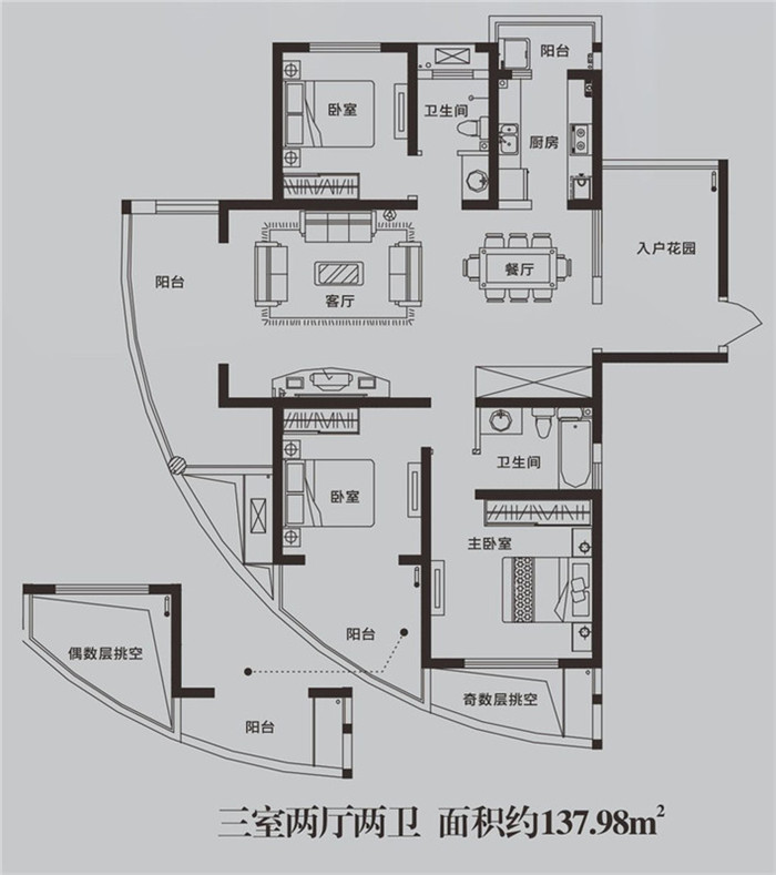 • 東方金典三期和悅GA1b戶型 3室2廳2衛1廚137.98㎡