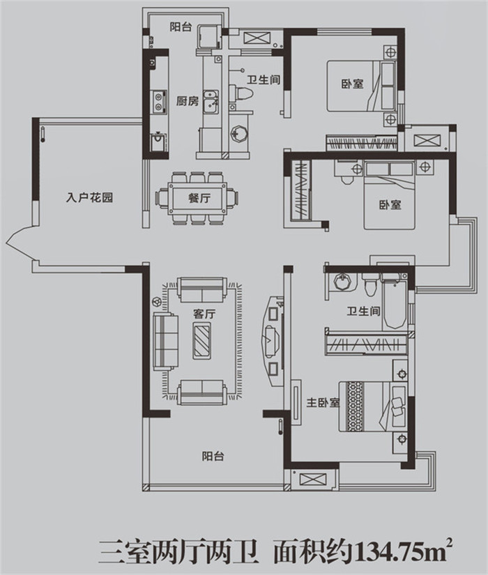 • 東方金典三期和悅GA2戶型 3室2廳2衛1廚134.75㎡