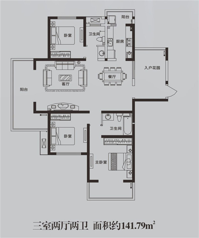 • 東方金典三期和悅GA1a戶型 3室2廳2衛1廚141.79㎡