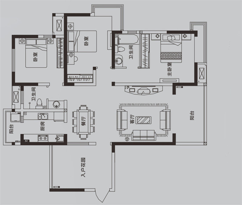 • 東方今典三期河悅GA3戶型 3室2 面積:127.77㎡