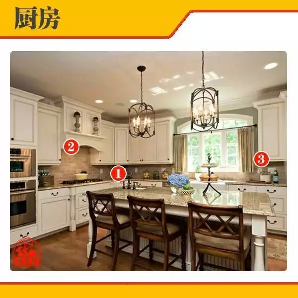 廚房內所用電器較多,所以在進行電路改造時,一定要想清楚廚房內會有哪些電器,具體位置在哪里,想好哪里應該預留電線接口,廚房應根據建筑裝修的布置,在不同的位置、高度設置多處電源插座以滿足抽油煙機、消毒柜、微波爐、電飯煲、電熱水器、電冰箱等多種電炊具設備的需要。這樣就不會留下裝修遺憾。