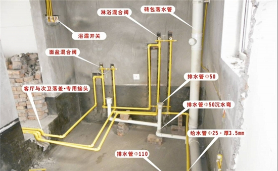 水管開槽,一般是先彈線,再開槽。管路開槽按要求必須是平行線與垂直線(如有水電施工圖的對照施工圖更好)。須平行走線的管路一律控制在60-90厘米高(從地面算起),有水龍頭的管路必須垂直。深度控制在4厘米。線槽開好后施工負責人記好開槽管路尺寸、位置。方便以后潔具安裝時知道管路的位置。