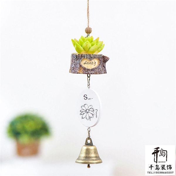 一個多肉和樹墩造型組合的風鈴,看著更顯自然清新的氣息。小巧的造型沒有大個的風鈴那樣,看著更顯可愛萌趣的感覺,清新的色彩打造獨特感。