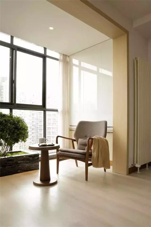 2、可以在陽臺做一個地臺,放張休閑桌椅,或者茶幾,這樣就可以改造成一個小茶室,讓你在閑暇之后休閑一下。