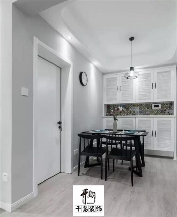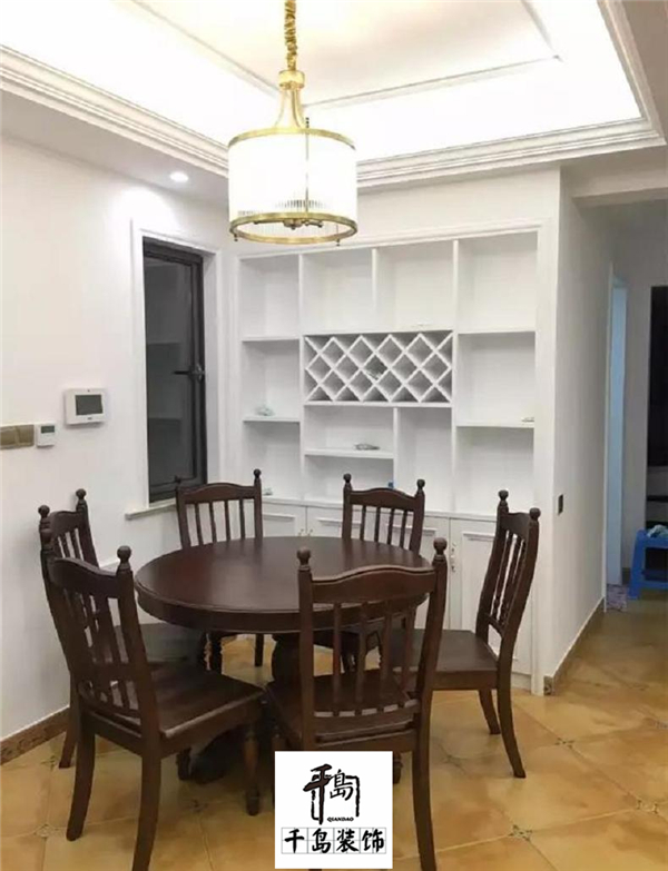 餐廳一般都是要餐邊柜或展示酒柜的,而靠墻做柜子的時候也不妨與墻面結合起來,裝成整潔大方的壁柜,然后整個餐廳都顯得高檔不少了,而且收納空間也得到了足夠的提升。