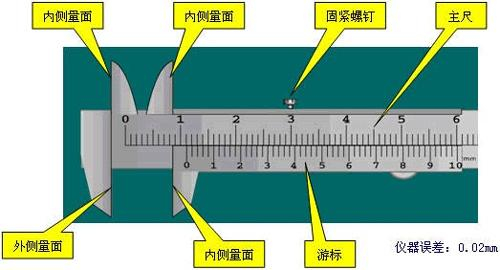 用途:測(cè)量長(zhǎng)度、內(nèi)外徑、深度,是一種被廣泛使用的高精度測(cè)量工具,由主尺和附在主尺上能滑動(dòng)的游標(biāo)兩部分構(gòu)成。
