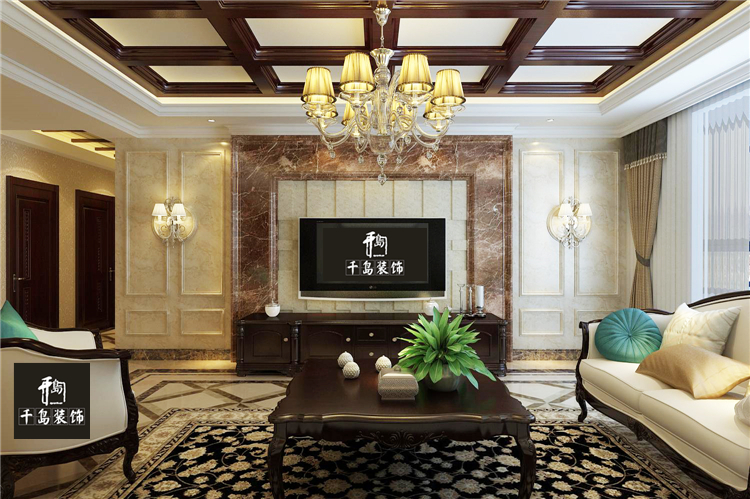 東方今典博雅美式客廳沙發(fā)墻裝修效果圖