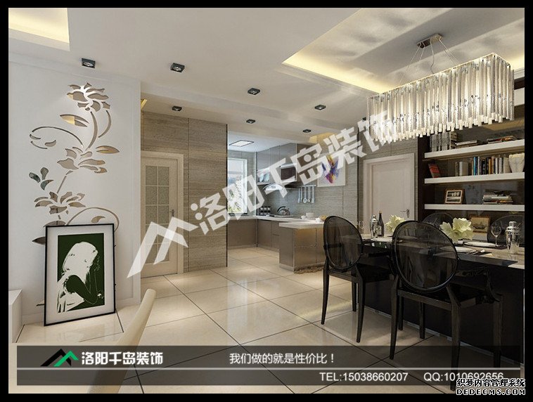 簡單的客廳擺設(shè),讓視線開闊,心情也變的輕松。現(xiàn)代簡約的精髓就在于簡約而不簡單!洛陽千島裝飾,我們爭做洛陽的裝飾公司!