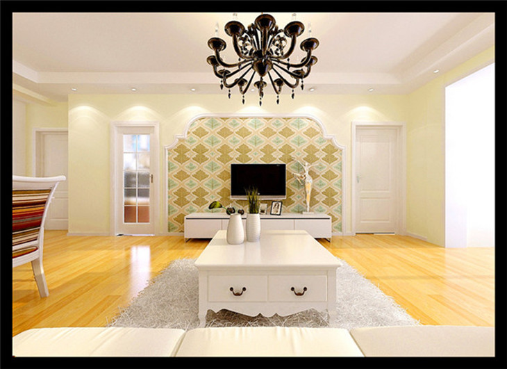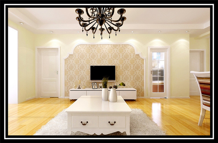 歐式簡約風格是歐式裝修風格的一種,多以象牙白為主色調,本文小編所選取的就是以暖色調的米色為主色調的,高貴時尚的吊燈,光潔的實木地板,還有雕花的電視墻,這一切都讓人耳目一新,雖然看起來簡單,但是歐式風格的美主要體現在細節上。
