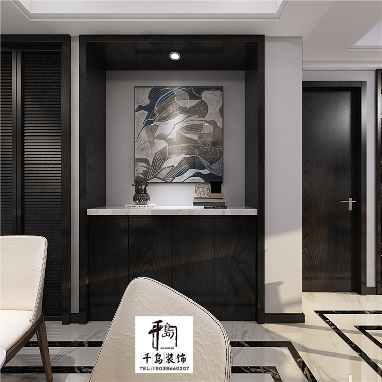 人人都說喜歡現代簡約風格,可一不小心就只得到簡單,甚至是簡陋。對家裝來說,在簡潔不浮夸的基礎上,提升格調彰顯品味,才能真正做到簡約而不簡單。現代簡約風格的裝飾,以簡約的元素奪人眼球。給人營造出一種簡潔又時尚前衛的環境。它的理念是擺脫繁雜追求簡單和自然。本案例在現代簡約的基礎上,融入了深色調的黑胡桃木家具和如有詩意的軟裝配飾,可謂是現代簡約的深化版本。