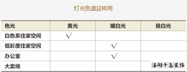 但不同色溫的光也不建議分區使用,例如客廳、餐廳使用黃光營造氣氛,浴室、廚房、臥室用晝白光;光的顏色跟墻面色彩一樣,不同的光色會導致空間凌亂。建議統一空間的色調顏色,保持家的整體性。墻面有色的空間,介于黃光與晝白光之間的暖白光能讓空間更有精神。