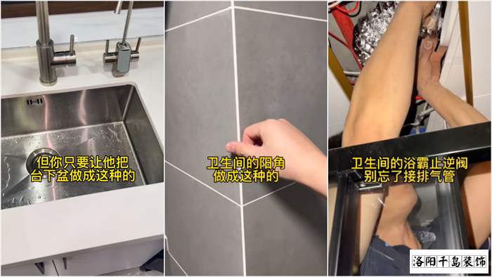 四、不管你是半包全包還是自己裝,在你不懂的情況下,你能參與的地方真的很少,但你只要讓他把臺(tái)下盆做成這種的,衛(wèi)生間的羊角做成這種的,衛(wèi)生間的浴霸止逆閥,別忘了接排氣管,你家裝完幾乎就沒什么大毛病。