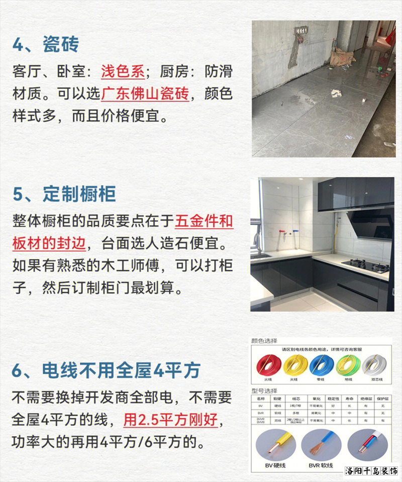 3、水電改造,水電改造有兩種方式,全改和局部改,如果你是二手房,房齡很長的電線也都老化了,那么這個錢你不能省,你把里面所有的線路通通換掉,畢竟安全才要放到第一位。但如果你買的是新毛坯房,那就做局部改造,這樣水電施工的費用又可以輕松省個幾千塊。還有開發(fā)商用的電線,那都是國標的,不用換。