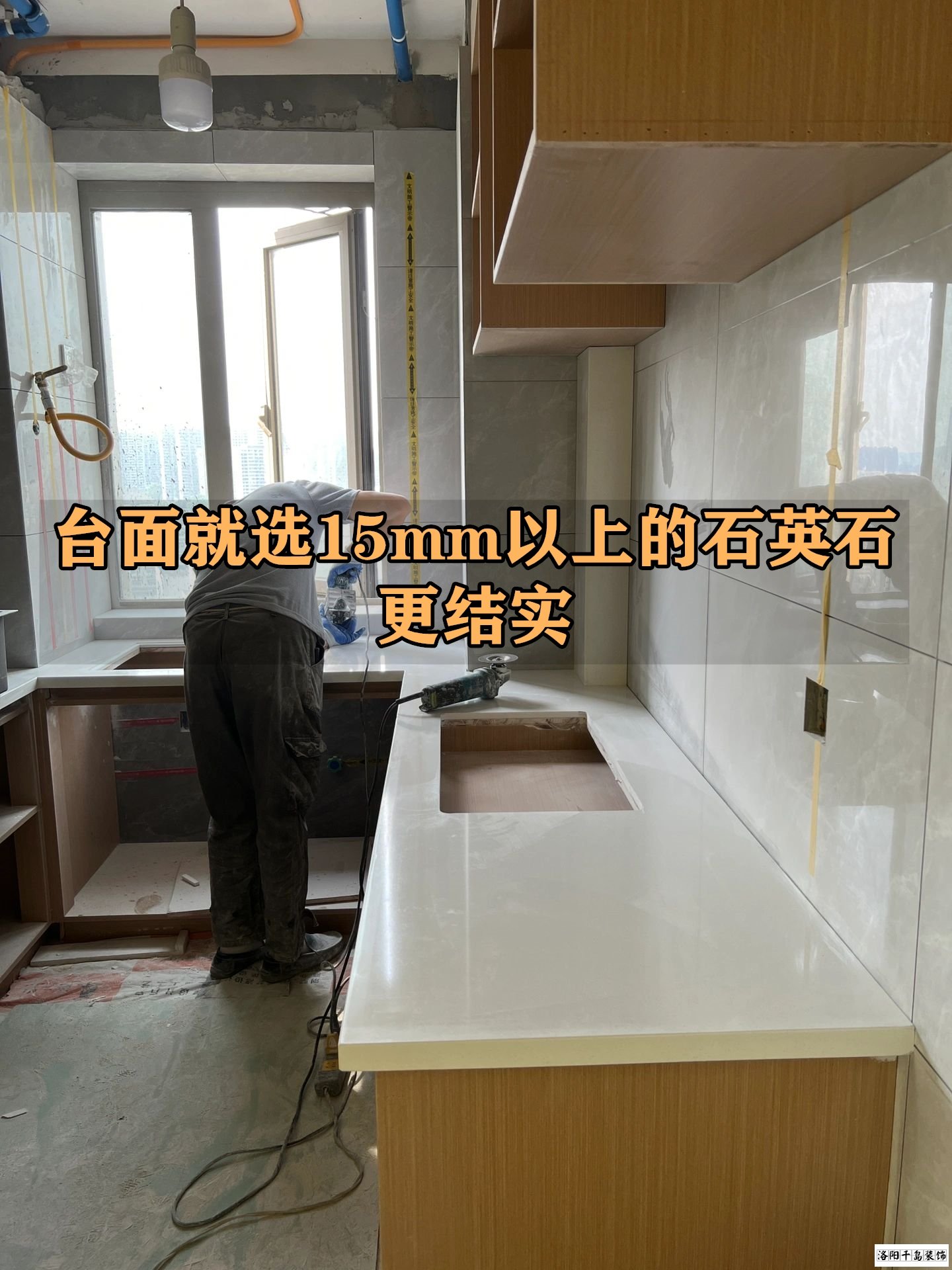 臺面想要結實耐用,厚度要選擇15毫米以上的石英石,而且安裝的時候底部框架一定要用龍骨做支撐,這樣才能保證它的受力是均勻的,后期在家躲排骨也不怕它開裂。