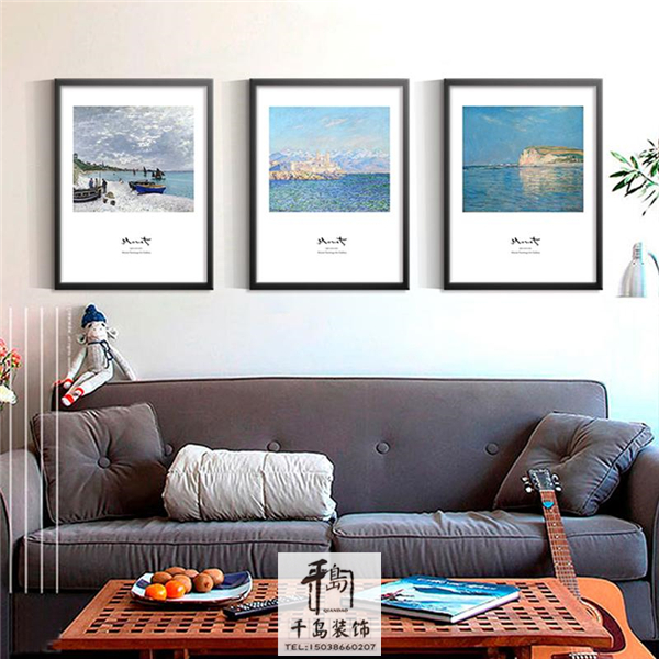 沙發背景墻可以選擇掛幾幅簡約的掛畫,這件莫奈的翻印油畫,顏色比較豐富,留白的畫面顯得非常的有氣質,黑色邊框符合了對于北歐風格定律的恪守,配合上柔柔的射燈,掛起來的效果非常贊。