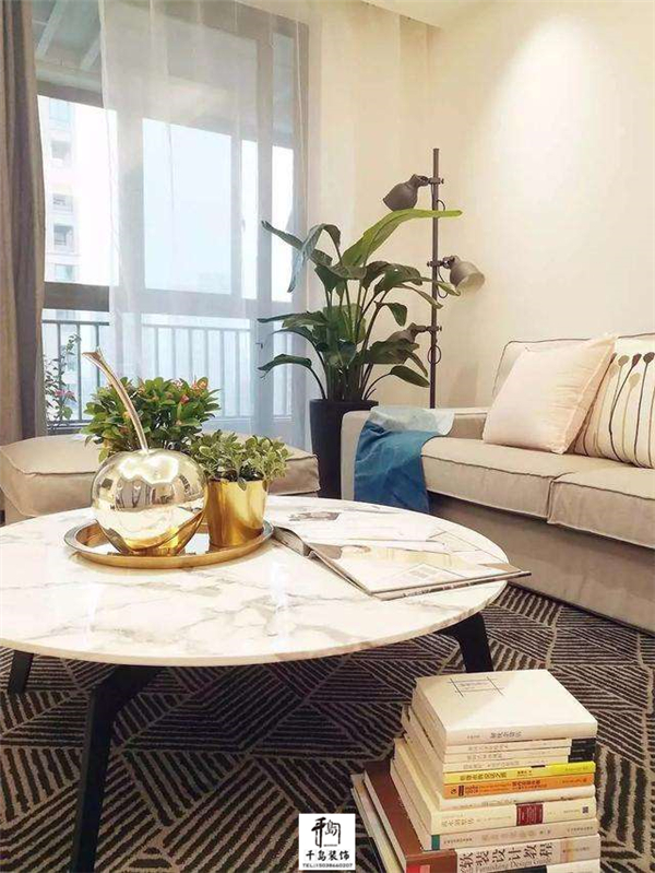 白色大理石茶幾臺(tái)面,再擺上古銅色的花盆,體現(xiàn)出一個(gè)大氣、時(shí)尚的家;
