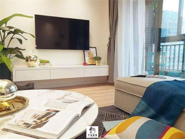 與傳統(tǒng)的落地電視柜不同,這里設(shè)計(jì)了懸掛式的白色電視柜,簡(jiǎn)約時(shí)尚,重要的還實(shí)用,旁邊的綠植很搶眼,給家里營(yíng)造出一個(gè)很清新的氛圍;