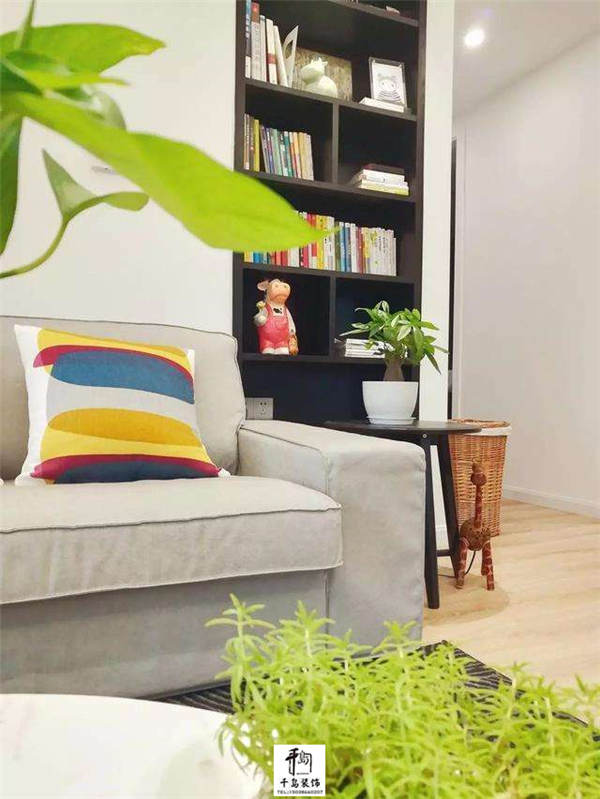 沙發(fā)墻即是在沙發(fā)的旁邊,做了一個(gè)嵌入式的壁柜,黑色的層板與白色的墻面形成一個(gè)視覺(jué)上的對(duì)比,看起來(lái)更有層次,重要的是也增加了家里的儲(chǔ)物需求;