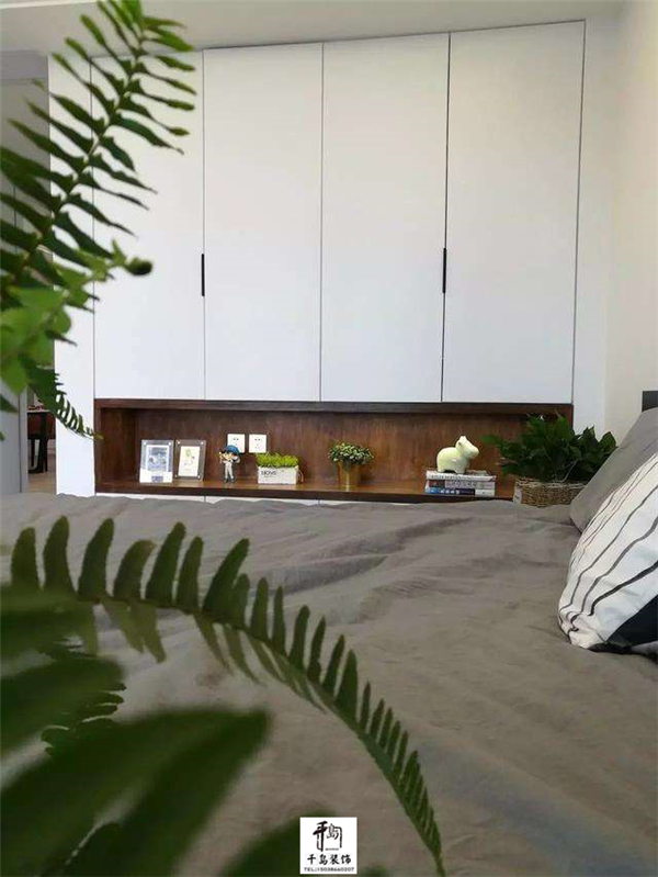 主臥陽(yáng)臺(tái)靠墻處設(shè)計(jì)了收納柜,同時(shí)也可以種植花花草草;