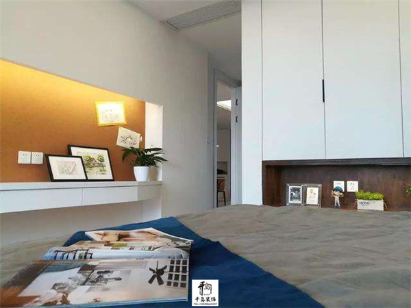 次臥延續(xù)了主臥的設(shè)計(jì),設(shè)計(jì)了同款式的衣柜,保證了整屋風(fēng)格的統(tǒng)一性;