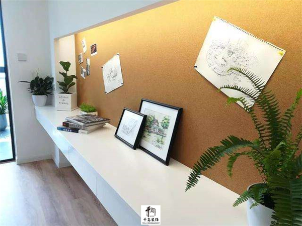 墻面做軟木板,用于訂畫(huà)、訂照片等,既顯得方便又文藝;