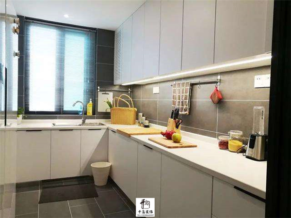 業(yè)主想要一個(gè)大的廚房,這么看來(lái)這算是滿(mǎn)足了業(yè)主的要求,大的U字型操作臺(tái)面,使用起來(lái)不要太爽了;