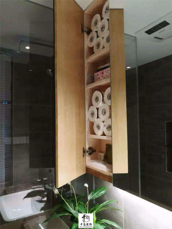 鏡柜很實(shí)用,用于收納紙巾,保持了衛(wèi)生間的干凈、整潔;